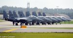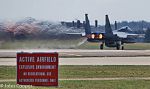 F15's taxiing to preflight check line, then on to runway, select afterburners and away