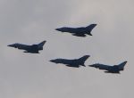 2 X Typhoons flanked by 2 GR4 Tornado aircraft