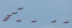 9 x Hawk jets of The Red Arrows [ a 5 ship and 4 ship formation that by the time it arrived over Chantry Ipswich had formed into the usually 'V' formation